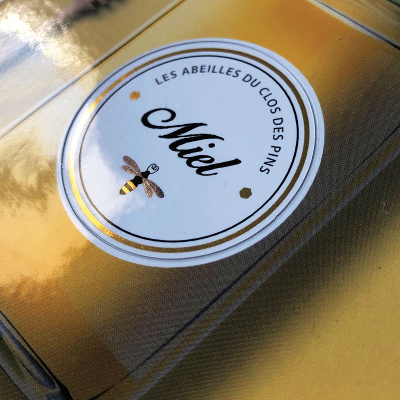 La dorure à chaud permet de sublimer l’intensité et l’éclat de la couleur dorée (ou autre) de votre support ou étiquette en lui apportant un léger relief. C’est un film aux nuances dorées, argentées ou d’autres couleurs qui est déposé sur une partie spécifique de votre support ou étiquette par phénomène de pression.